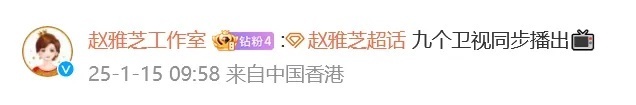 此外,赵雅芝工作室还补充:“九个卫视同步播出。”