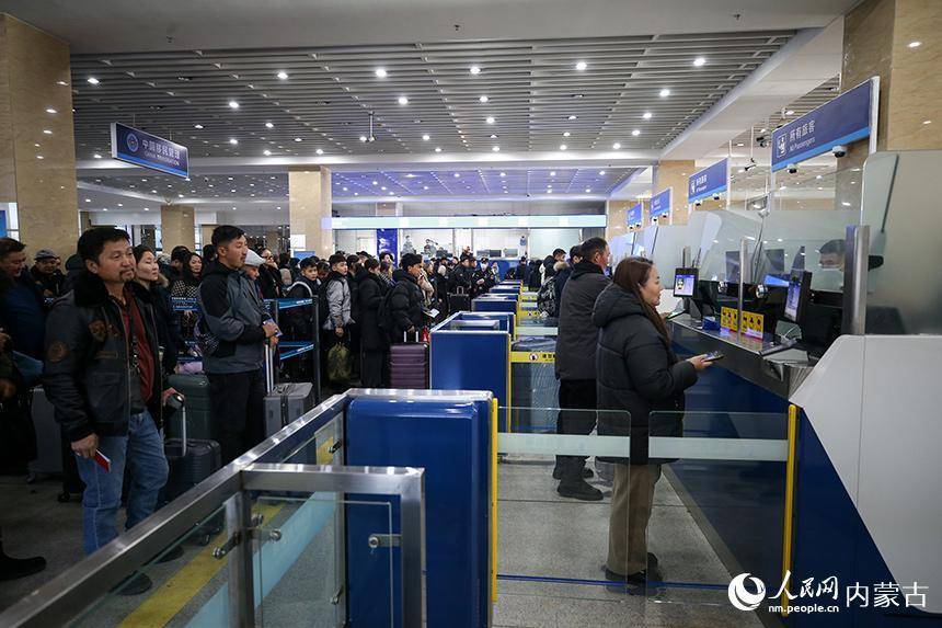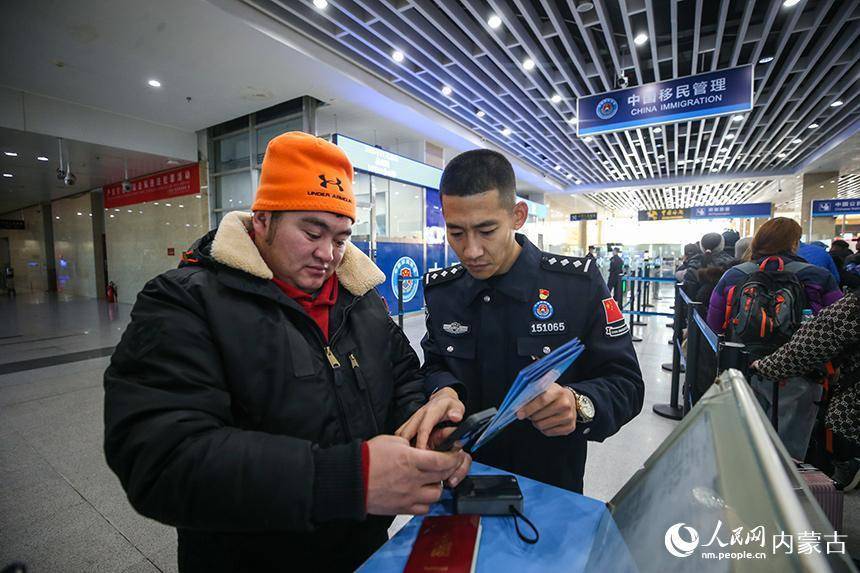 二连出入境边防检查站移民管理警察为旅客办理入境手续。郭鹏杰摄