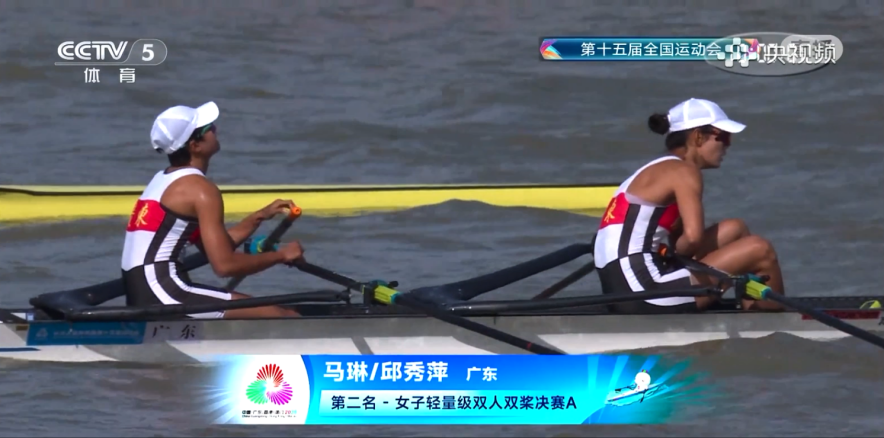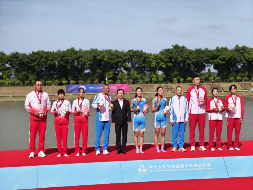 第十五届全国运动会赛艇女子轻量级双人双桨决赛颁奖仪式。左二为马琳