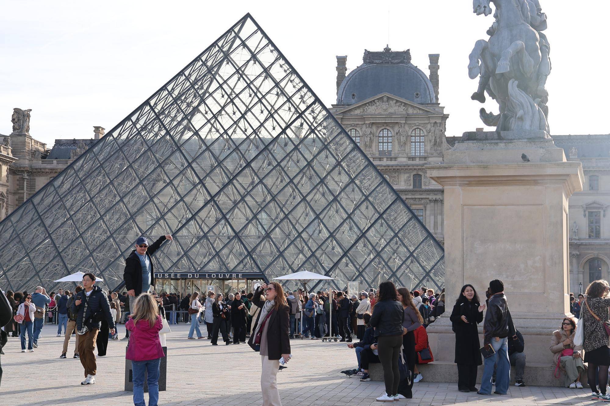 10月22日,在法国巴黎,大量游客聚集在卢浮宫博物馆的玻璃金字塔入口前。新华社记者张百慧摄博物馆因此决定关闭二楼办公区,将65名工作人员转移到其他区域办公。同时为保险起见,关闭楼下的坎帕纳展厅,以便调查具体原因并开展必要的修复工作。