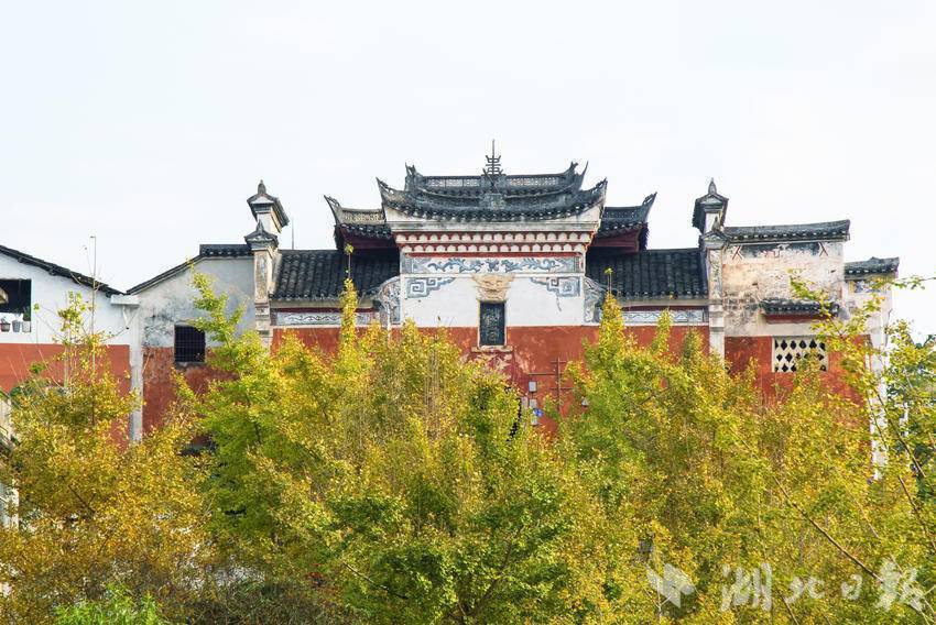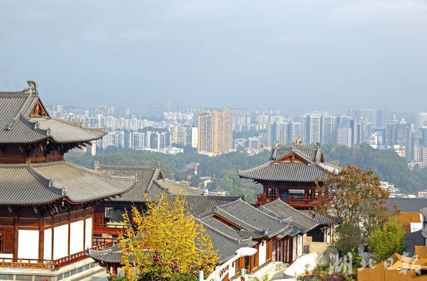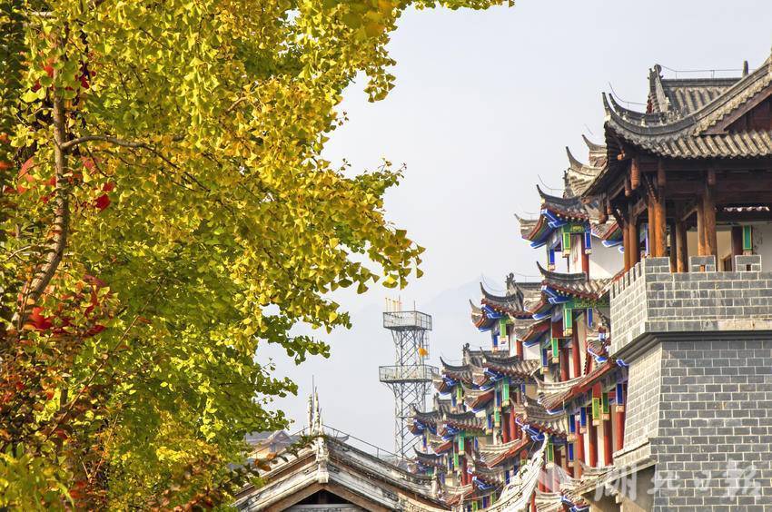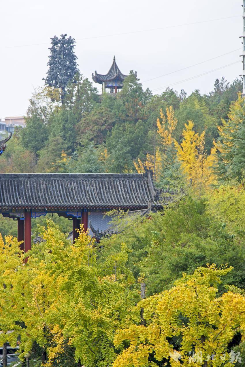 11月15日,恩施市城区金黄色的银杏与古建筑交相辉映,如诗如画。
