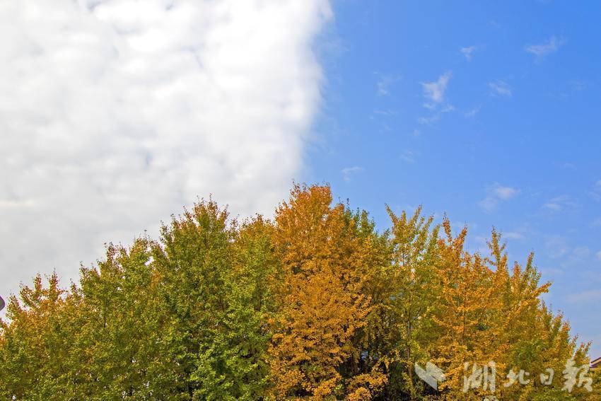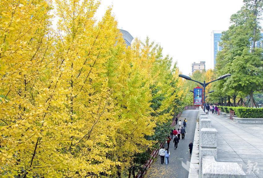 初冬时节,恩施市城区金山大道的银杏树“披金甲”。
