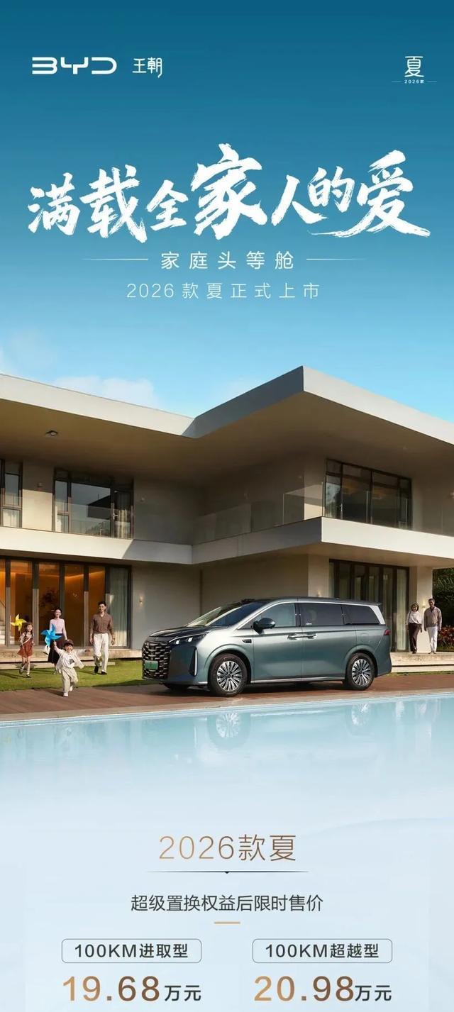 11月4日,新款比亚迪夏上市。新车共推出4款车型,售价20.68-26.98万元。